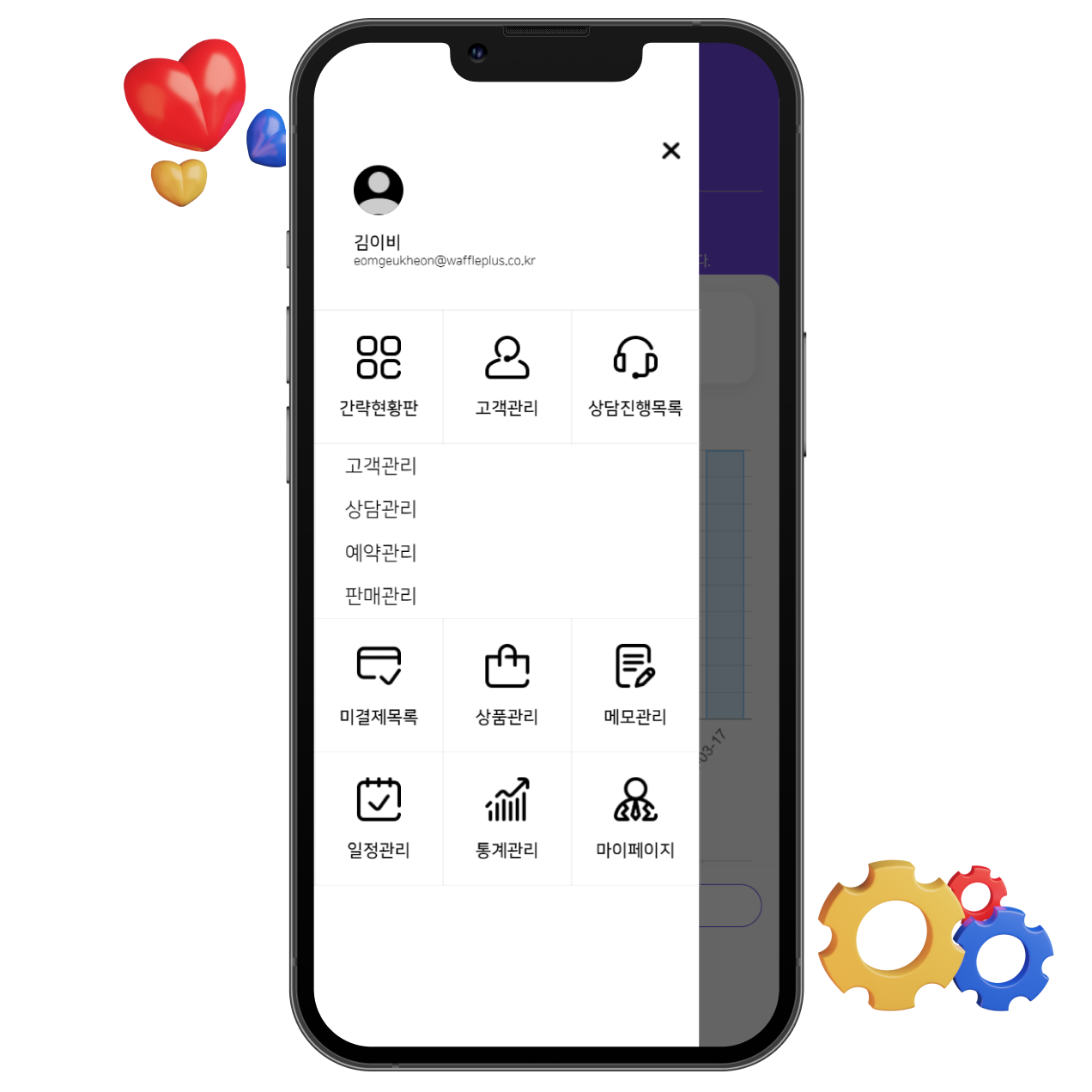 1. 회원을 대상으로 한 고객, 예약, 판매, 상담 등을 관리하는 서비스