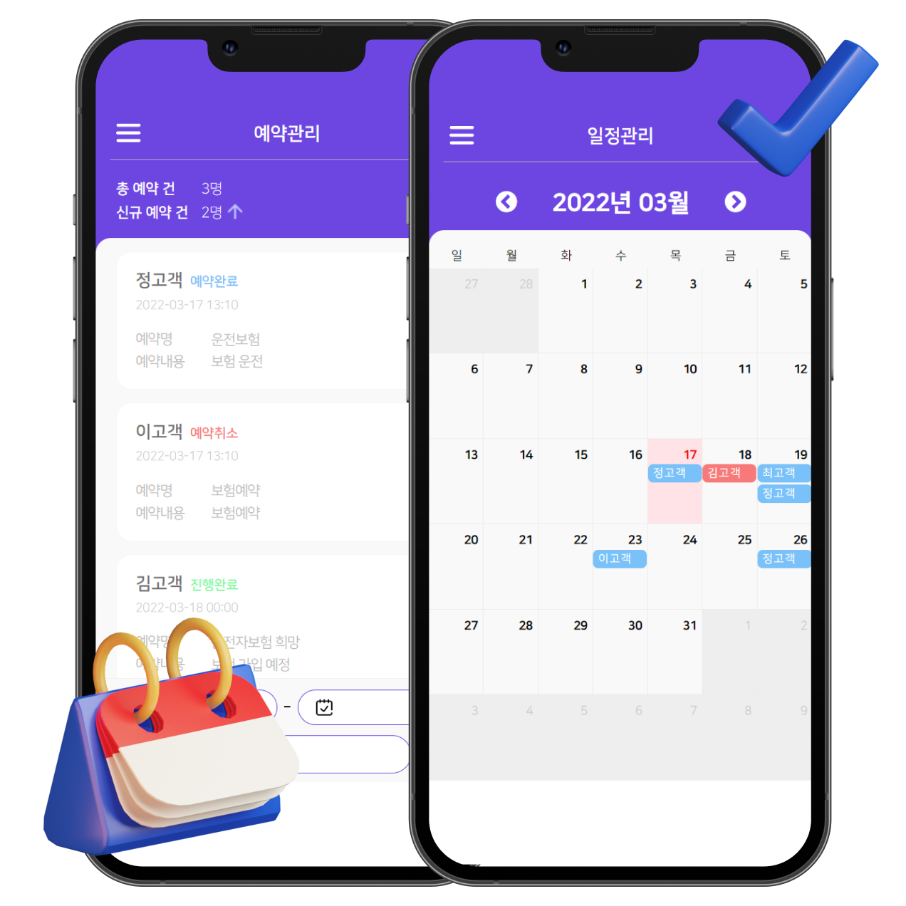 고객과의 예약된 일정을 한눈에 파악하세요.