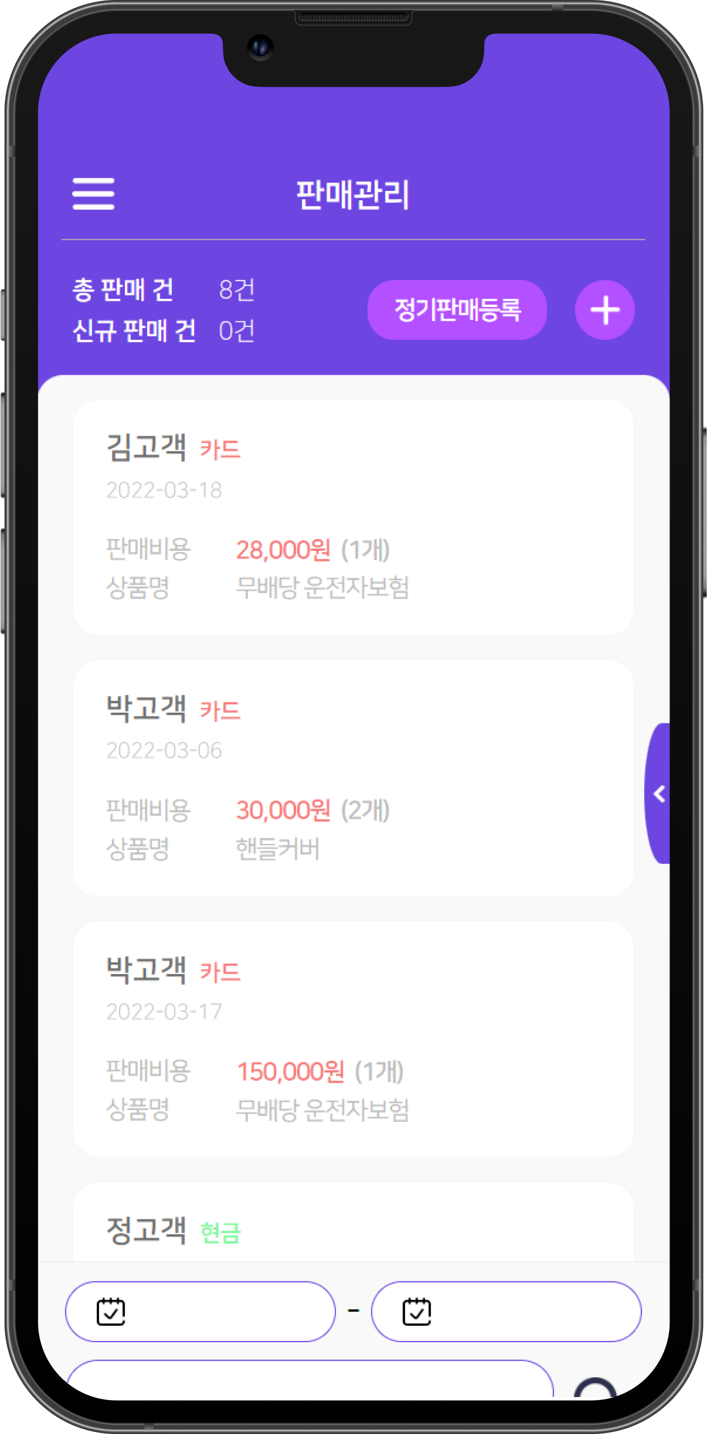 일정, 판매 내역은 기본,