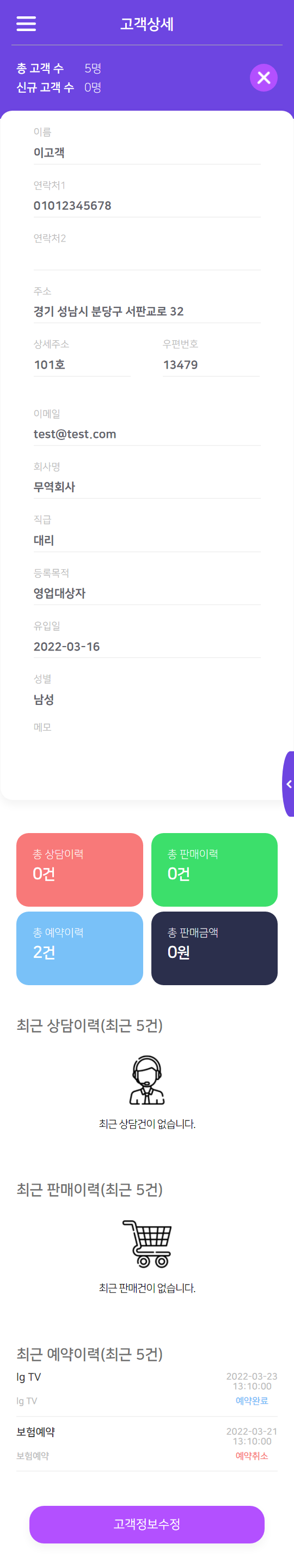 고객등록 및 수정