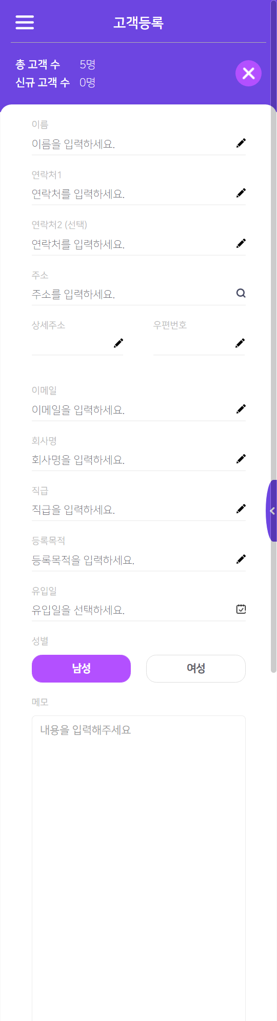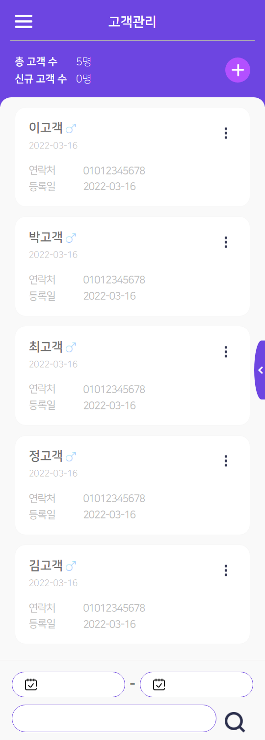 을 터치하면 고객 등록 페이지로 이동합니다. -