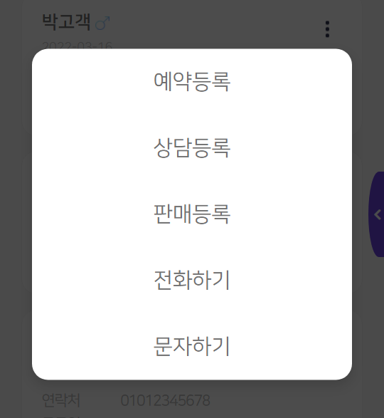 을 터치하면 해당 고객에 대한 기능을 사용할 수 있습니다.