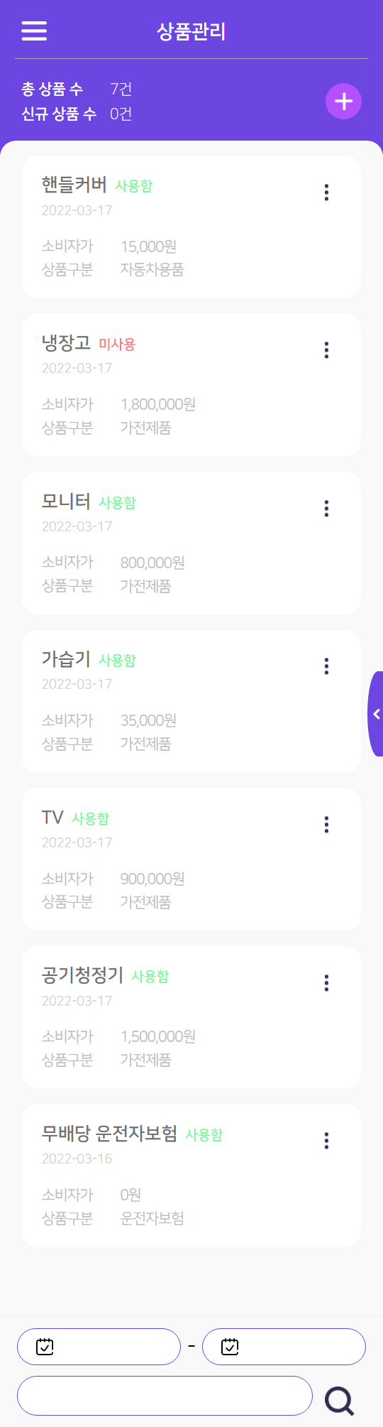 을 터치하면 상품 등록 페이지로 이동합니다. -
