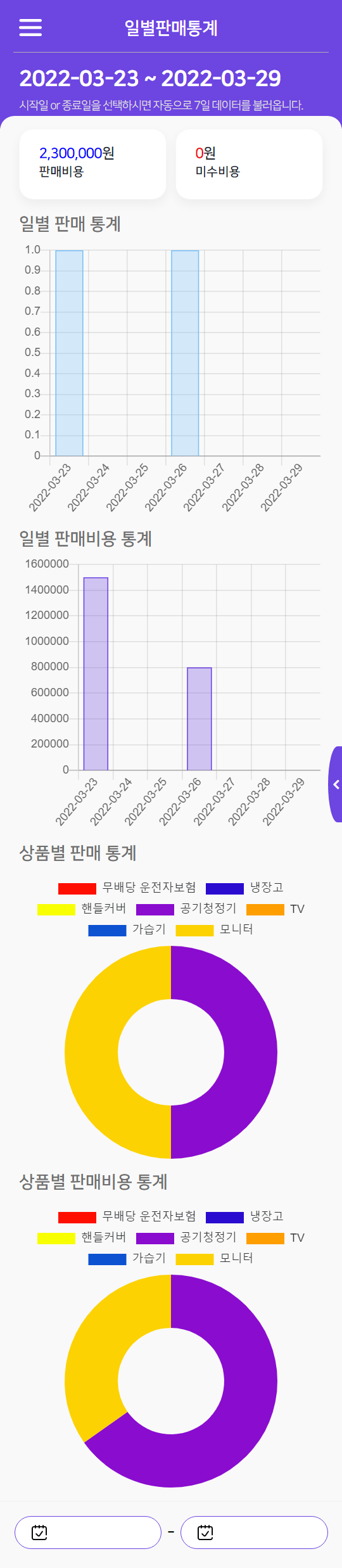 - - 일별 매출 통계를 확인할 수 있습니다.